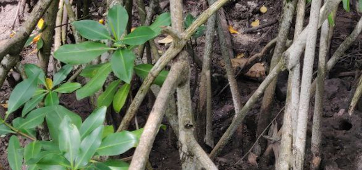 Je suis allé ce matin faire un tour dans la mangrove pour glaner quelques plantules de palétuvier pour l’aquarium d’eau de mer d’un copain en métropole (les palétuviers poussent aussi très bien en eau douce).