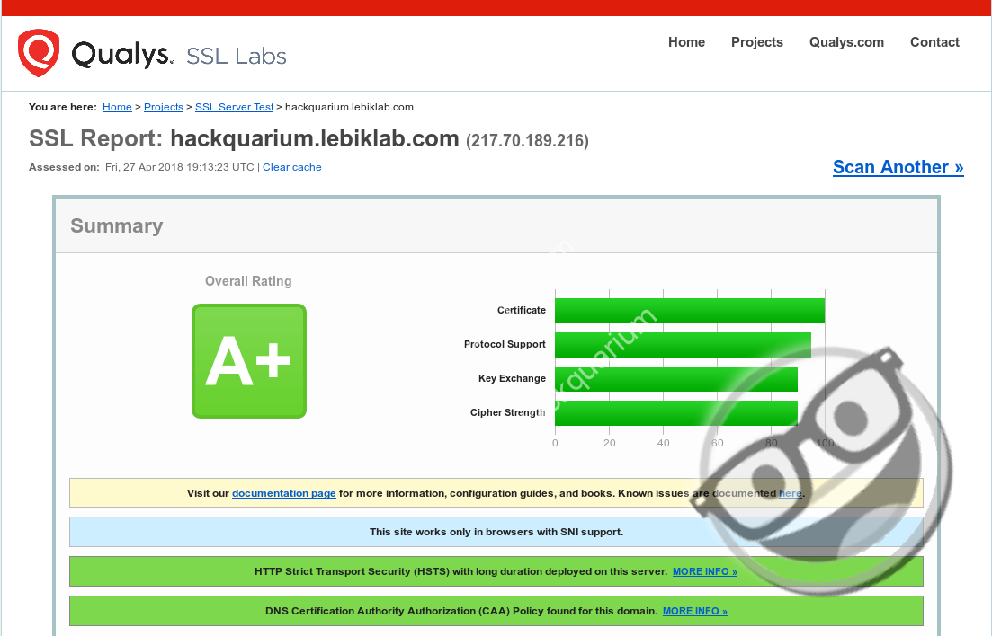 La réponse a été une configuration affinée et le niveau A+ au test SSLLABS