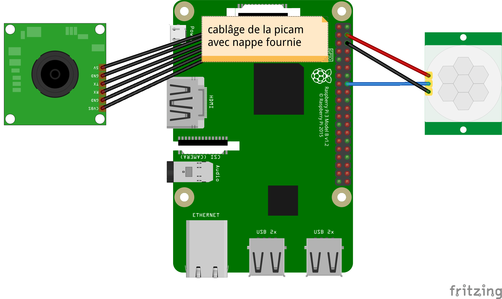 Je partage dans cet article mon 1er prototype qui utilise un capteur de mouvement infrarouge. Ce prototype utilise un transfo raspi pour l’alimentation et le WiFi + SSH pour communiquer avec la caméra et récupérer les fichiers.